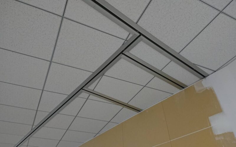 特殊な部材を使い天井が真っ直ぐであろうと、斜めになっていようが、マス目を崩さずに施工することが可能となっています。